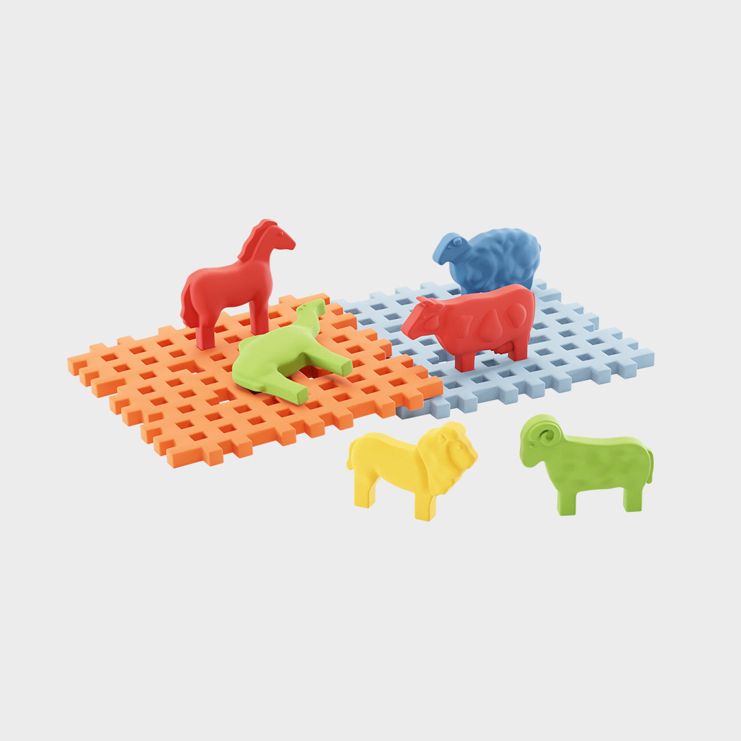Mini Waffle to miękkie, elastyczne i przyjemne w dotyku klocki, które zachęcają dzieci do rozwijania wyobraźni, zdolności manualnych oraz logicznego myślenia. Dzięki charakterystycznemu kształtowi, dzieci z łatwością łączą elementy, tworząc własne historie i scenki z życia zwierząt.