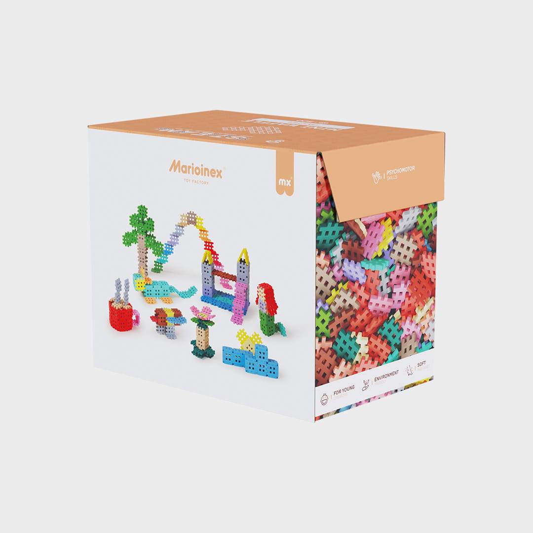 W zestawie znajdziesz 500 elementów. Rozmiar opakowania: 25 cm x 20 cm x 17,5 cm